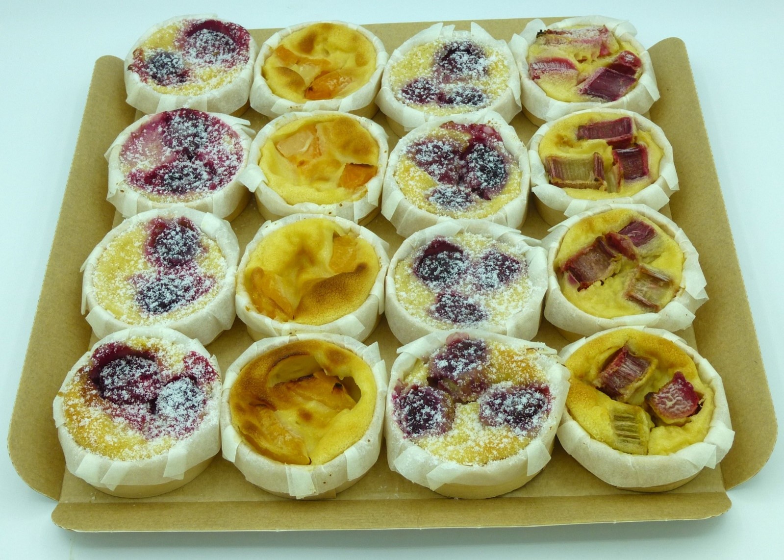 Consommer chaud : Oter le film protecteur et réchauffer les clafoutis directement au four traditionnel (150 °C) pendant 10 à 12 minutes environ