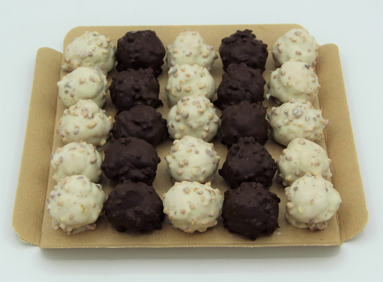 10 mini choux rochers crème mousseline chocolat-noisette enrobée d’un glaçage cacao-noisette, éclats de noisette