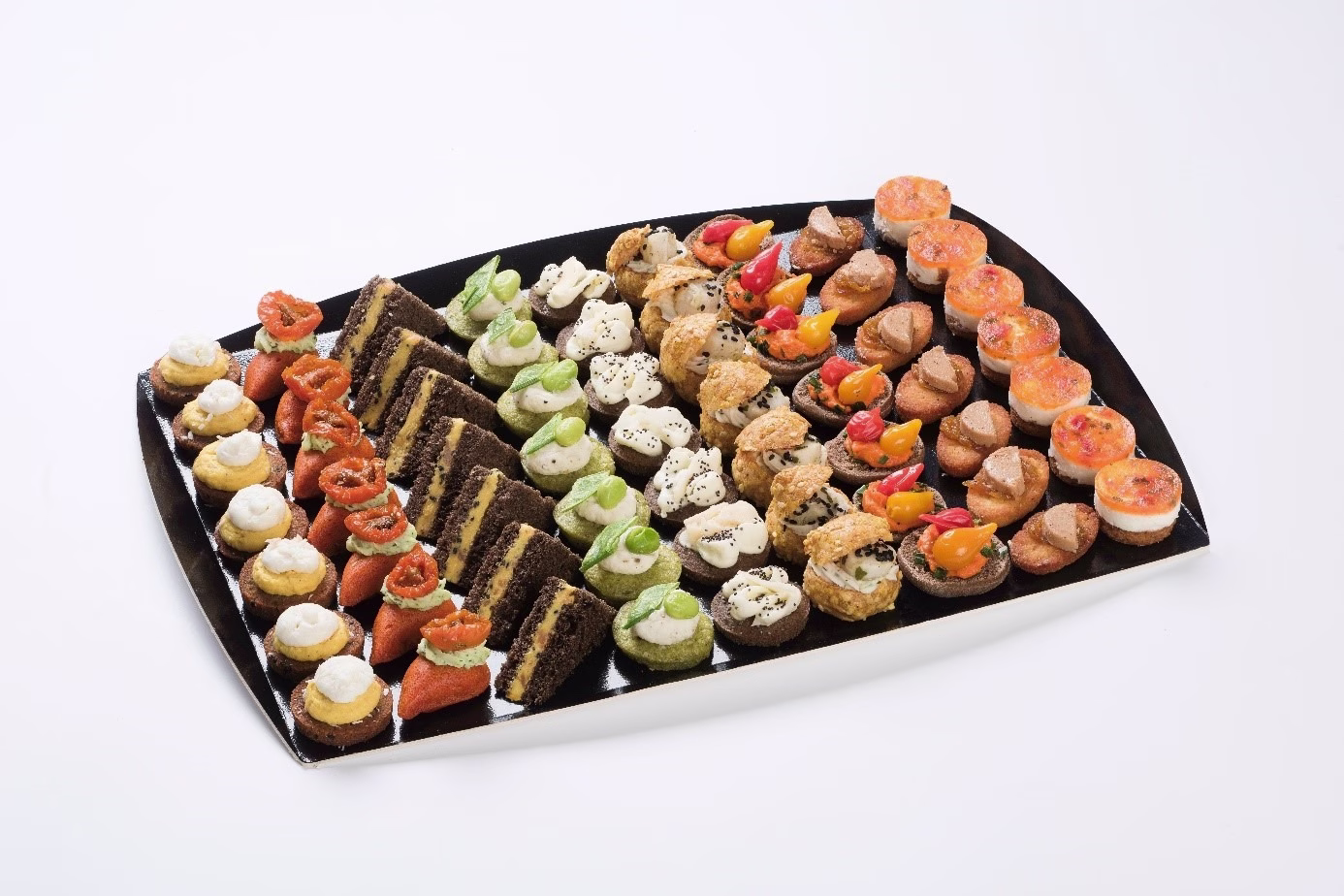 7 Canapés au pesto, 5 baies, pois gourmand et édamamé